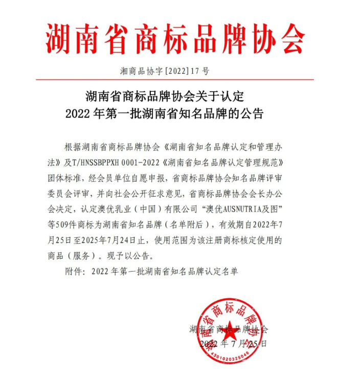 2022年7月25日,经湖南省商标品牌协会认定,9001cc以诚为本智通成功入选《湖南省知名品牌》。